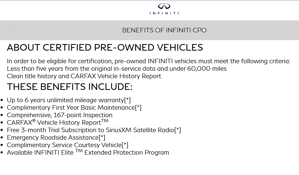 INFINITI Certified Pre-Owned Details: